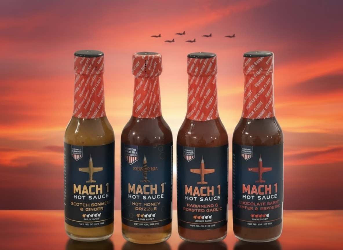 We are a Veteran-owned hot sauce company driven to deliver the ultimate hot sauce experience through bold, distinctive flavors and crafted without added sugars, gums, preservatives, or stabilizers. Inspired by American Aviation we are all pushing boundaries, exploring what's possible and love ingenuity.