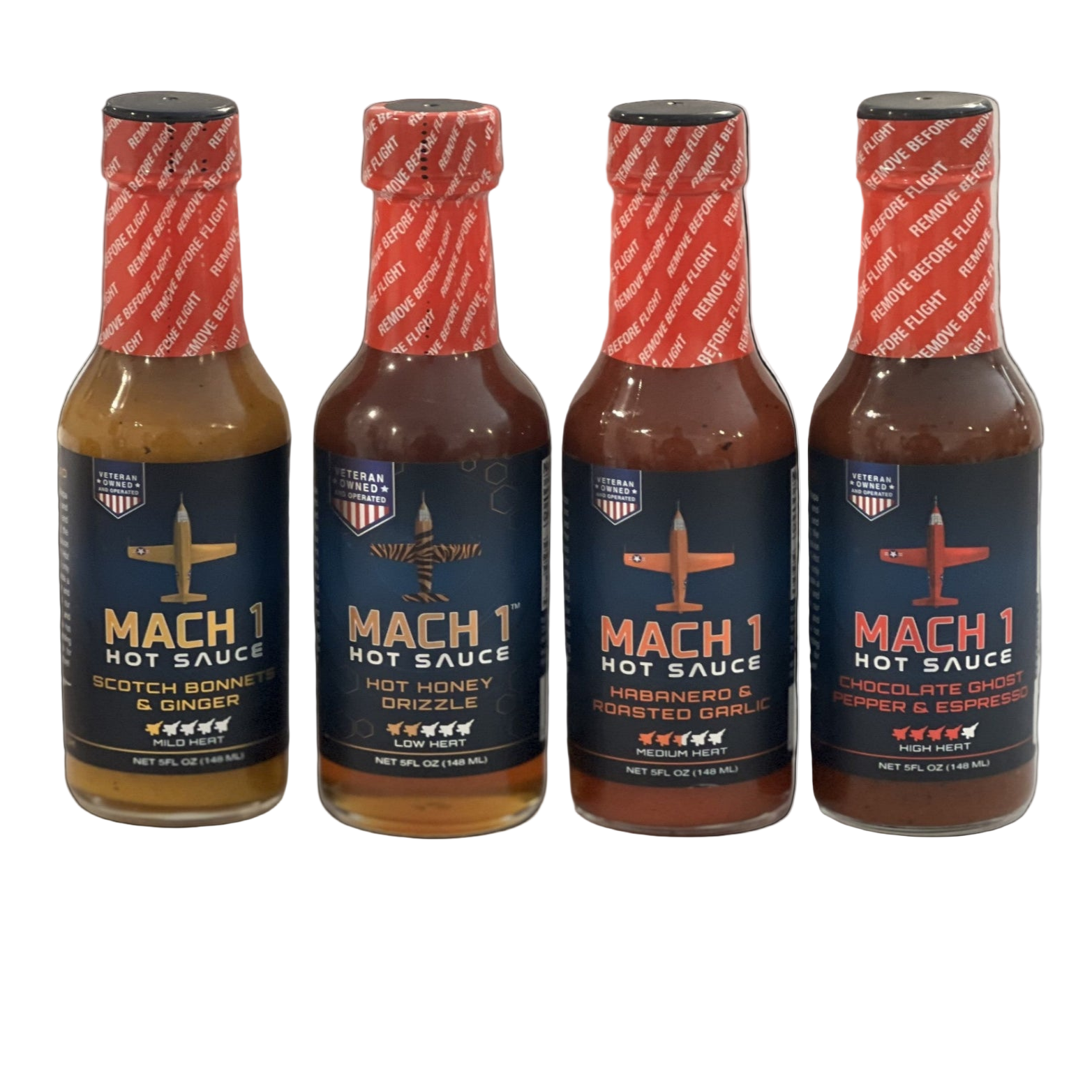 Why settle for one flavor when you can experience the full Mach 1 lineup? Our Hot Sauce Bundle packs every level of heat – from mild to packing a punch – so you’re ready for any spicy mission. Perfect for the indecisive or the downright daring.